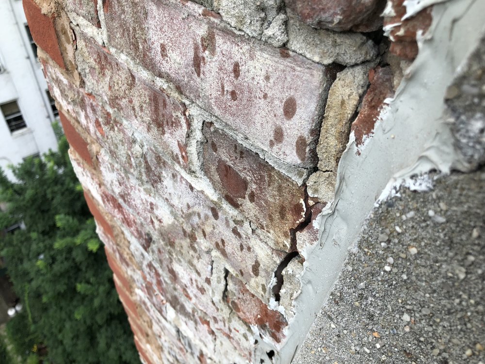 Hi all, Our building recently had an exterior wall partially rebuilt. This is a 6 story building constructed around 1900 brick and mortar. A contractor was hired before I moved in. As I understand it, the project was to remove material from the outside of the build and repoint. As I understand it, it went from a $100,00 repoint to a $260,000 project. In the course of this project, they ignored the side of the building. Instead, it appears that they removed some cement covering the brick and then put caulk between the cement and the brick. The wall subsequently developed large cracks A winter has passed between the completion of the work and the time of these pictures. Do you think the caulk could have caused this cracking? Is this serious? What actions would you take? thank you!!