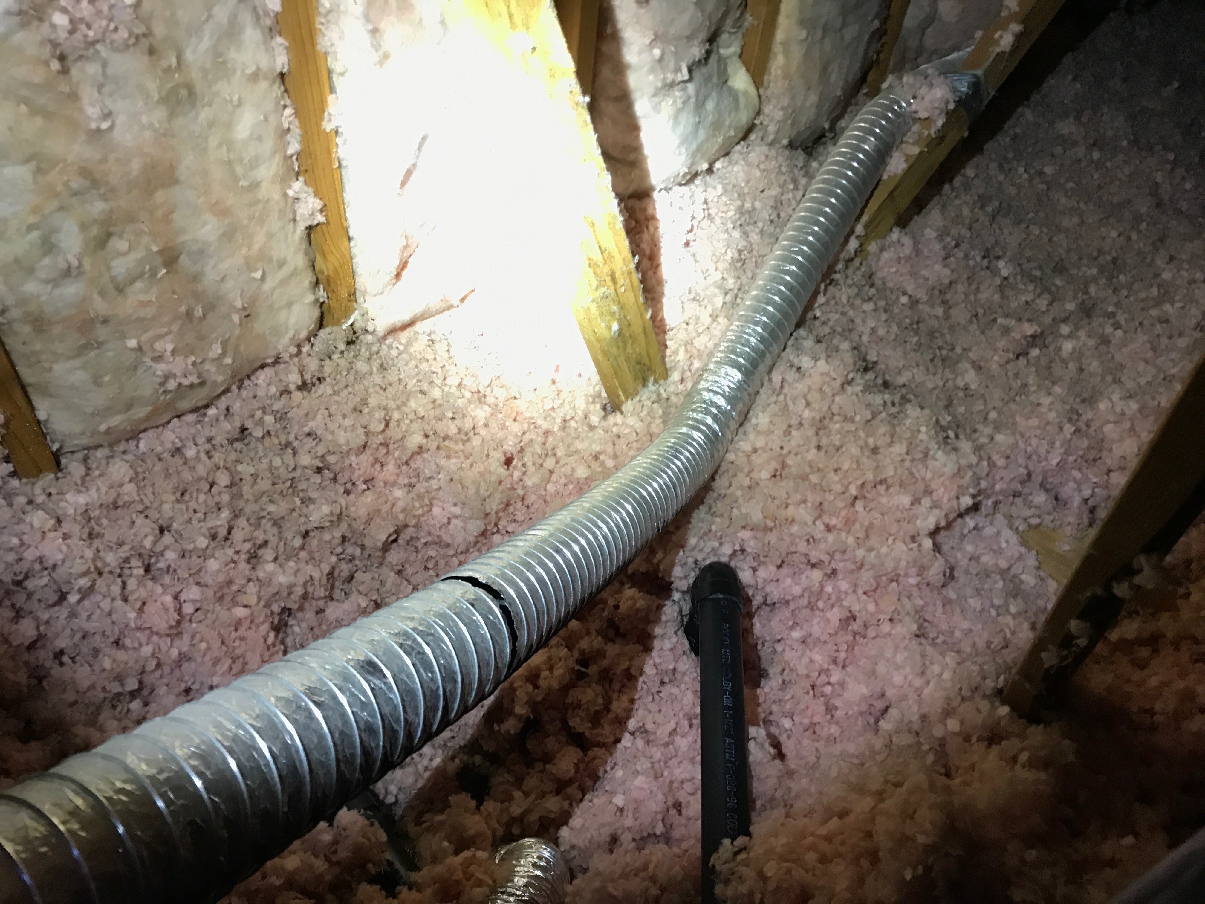 Corrugated Drain Terminates in Crawlspace