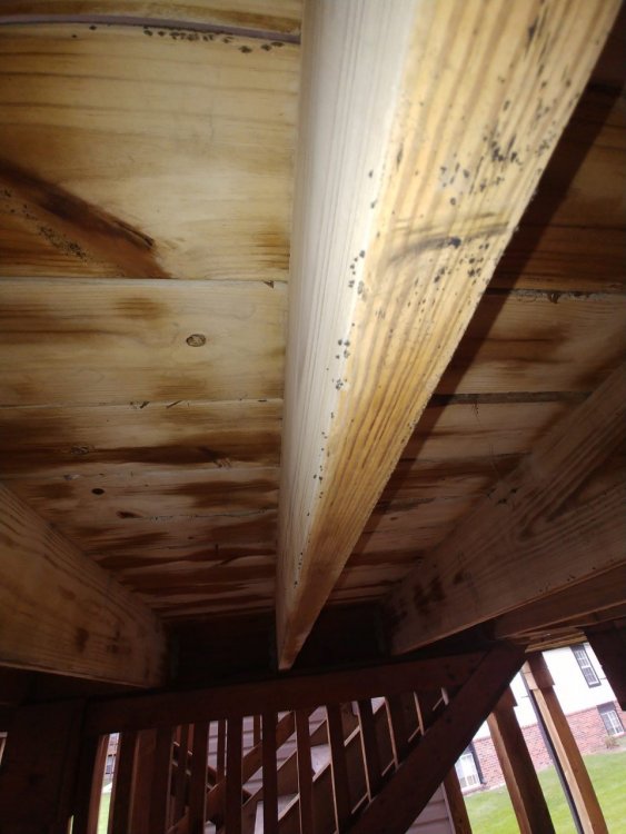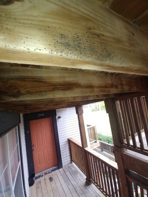 Hi there, I was curious if I could get opinions on this. Moved into these apartments quite sometime ago, but now that the weather is getting cold, we've decided to open up our windows for the last few weeks. I noticed these spots in summer but brushed it off as it was probably dirt. There are 3 levels to these apartments and 5 different buildings, each 3 levels. I'm assuming they do testing on these every year? Maybe not. It's all over the stairs and railings as well. Does this look like black mold or just dirt. It does look pretty dark but I don't know if it is completely black. I got up close to some of the spots and they are pretty large in size, the girth being like the size of little pebbles (quite a bit bigger than sand), I don't remember mold ever forming in these bigger pebble sizes, I always thought they were more velvety and flat, and grew in corners and stuff. I could be wrong. The hangers of wood above is because we are on the 2nd floor (middle floor) and there is people above us and below us. I'm concerned because we had the windows open, and my girlfriend is pregnant. What should I do? I feel like if I reach out to the landlord then nothing will be done, and something should have already been done about it. The black spots seem to form near the cracks of the wood. My only other thought is that since there are people above us the dirt from the floor is draining down when we get rain and forming this after drying. We are in the midwest.