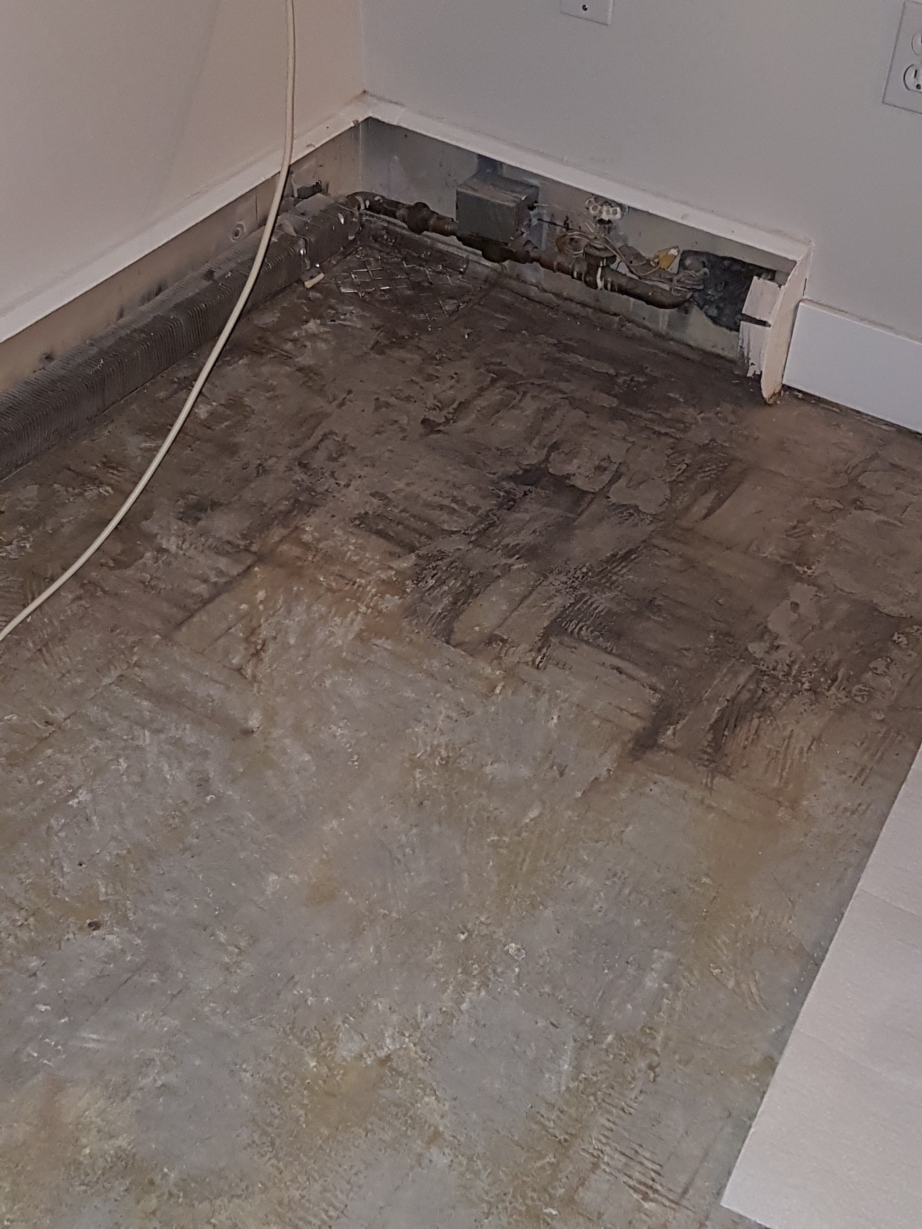 6. Thank you everyone for responses! The moisture is going to be taken care of, its just broken pipe what they going to fix. Now someone pointed that there might be asbestos and I am very worried since I want to clean it by myself. Is it possible there is asbestos glue under wood old parquets (condo is from 1970). Partially its yellow-brown and partialy black (where the mold was) glue left, its hard and dry, not sticky. Do I need to test it?