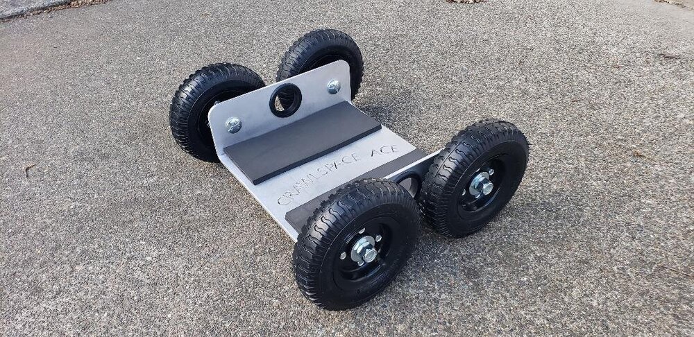 The Crawlspace Ace is built with 1/4 high grade aluminum and built to last. Comes to in 2 Different sizes, 16.5 Wide and 14.5 Wide.