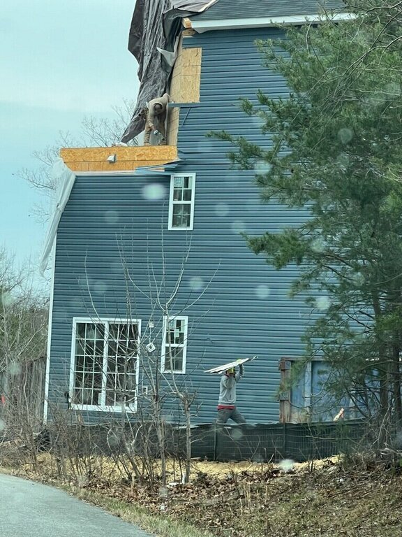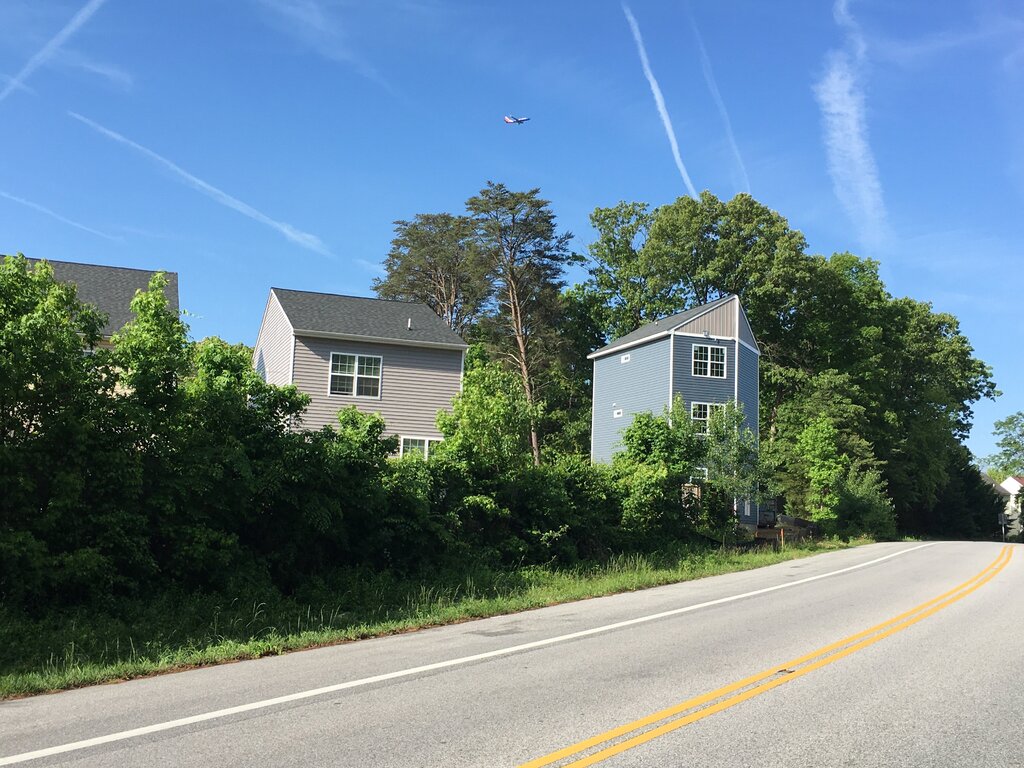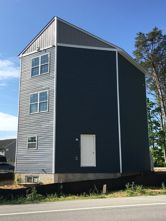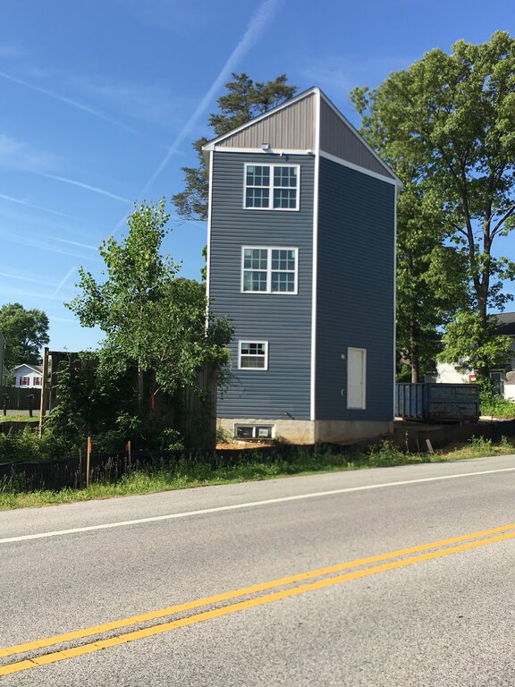 They finished buttoning up the siding. It’s weird when you approach it in a car because the angles make it look like the entire house is leaning over when compared to the house next door. It almost makes you dizzy.