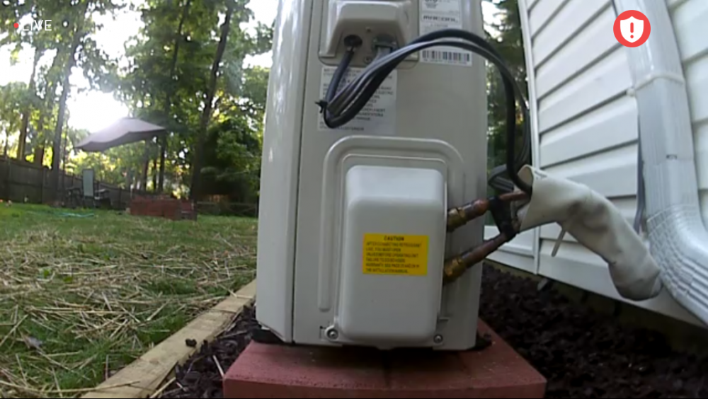 I sure hope the performance holds. Otherwise, it’s back to leak hunting. I’ve got my Arlo wireless security cam positioned to remotely monitor the refrigerant lines to see if they freeze up. There’s an orange ribbon tied to the grill which I can see fluttering on the cam when the unit is running. Obviously, it’s not running in this picture.