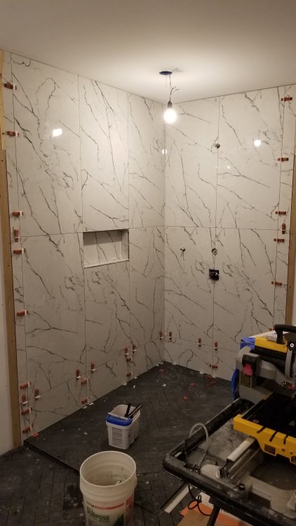 I don't have a picture of the pan before I tiled. I'll post a pic after its grouted.
