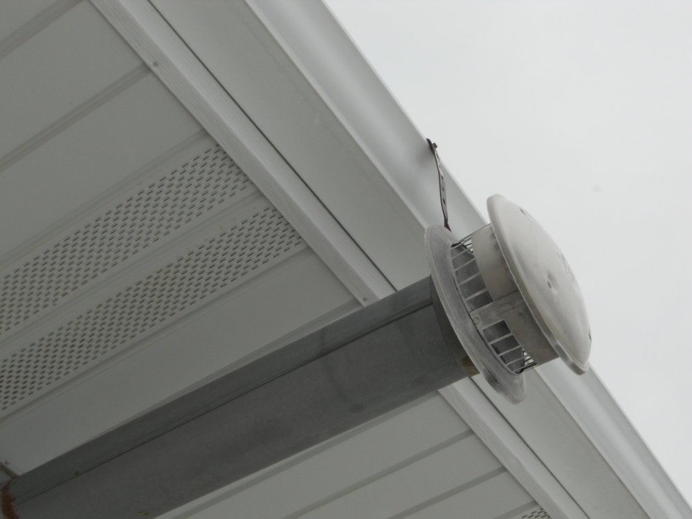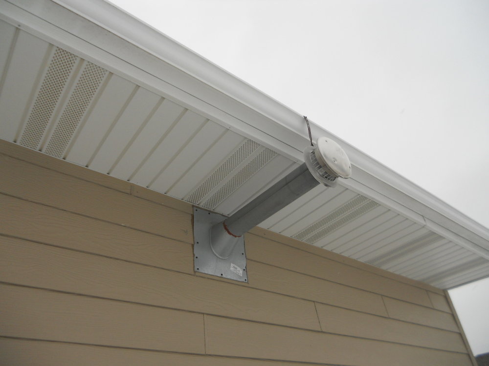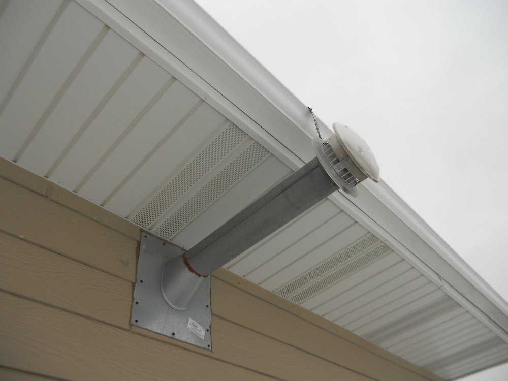 You are looking at a garage heater vent. i haven't seen this condition in awhile and was hoping someone could clarify the clearacne requirement from the soffit. Im reading 2 feet and 4 feet from different sources. I know its typically up to manufacturers recommendations but just need the general rule of thumb. Thanks in advance!