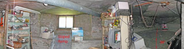 mthomas1 Posted July 8, 2010 Report Posted July 8, 2010 Today's inspection, Evanston IL. South end of the basement is sloped downwards 42" in 10 feet. The sloped portion extends half way down the east side of the basement (see panorama). In the center of the sloped area on the east wall is a ramp in the center extending down from a window located 4" above current grade. The rest of the basement is conventional. My first thought was "coal bunker", but it would have been an enormous ""L" shaped area around 24' on each side. And why slope the floor (feed an "iron fireman?"... but to build an entire end of the basement that way? The ones I've seen abandoned had a square or rectangular bunker a with a horizontal screw at the bottom.) The house has grown like Topsy and now has a 2nd floor and rear addition, but there was a plate hanging on the wall which I assume depicts the original configuration. Click to Enlarge 50.17 KB Click to Enlarge 28.12 KB Click to Enlarge 58.65 KB