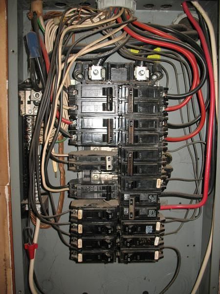 jharvell Posted April 6, 2011 Report Posted April 6, 2011 Here is a photo of the existing panel. The new panel will be in the same location to take advantage of the crawl space vent. As you can see, I've already installed a 2" PVC conduit at the bottom. I am currently in the process of re-routing all the conductors that enter the panel through the other conduits so they all enter through the bottom conduit. Once that's done, I'll replace the panel. The new panel is much taller. So the conduit exiting the bottom of the new panel will immediately enter the conduit body. So my total conduit length with the new panel will be minimal. Much less than 2' so I won't have to de-rate ampacity. There are a couple of reasons I don't want to install individual conduits. I'm pretty sure I won't have room for all conductors to enter the bottom of the panel with multiple small conduits. This is a 3000 square foot house with one sub panel for upstairs. I'm planning to replace all existing branch circuits and feeders, with everything going into the crawl space first. I'll probably end up needing two 2" conduits or maybe even 3" Even if I do have room, I'll probably have to bend the conduits. But I want to use PVC instead of EMT since PVC won't corrode. Also, I don't think I will have enough height to do the bends. Also I am no good at bending EMT. I have a surge protector (see photo) that's going to take up space at the bottom. Click to Enlarge 48.13 KB