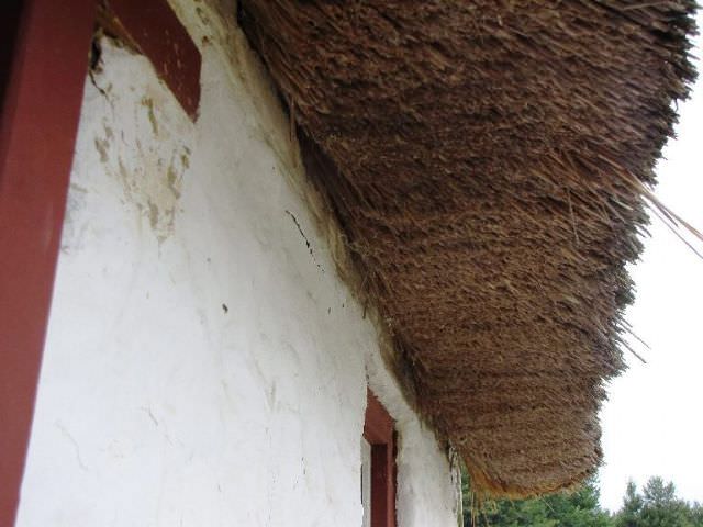 Bill Kibbel Posted August 16, 2010 Report Posted August 16, 2010 The thing that throws me, is that from the inside of the home, you can see the underside of sections of sod, which is the start of the system. I can only imagine the topside greenery becoming a slimy dead slick under the thatch. Help us out Bill. How's it all come together? The sod isn't part of the roof system - it's insulation. It's a very simple concept. Imagine building a dollhouse. Now, tie very thick bundles of hollow straws together and pin the bundles to the very steep roof structure, starting at the bottom. Now use a textured paddle to beat the bottom of the straws in each bundle upward, so only the bottom open ends of each straw are visible. This is called "dressing with a leggett". Now attach the next course and continue the same steps until the tricky part - the ridgework. Thatched roofs, with maintenance, can last 70 years. The ridge needs replacement about every 15 years. I've helped with some thatch repairs and helped with a new thatch installation on a reproduction building. It took us 5 weeks for about 10 squares.