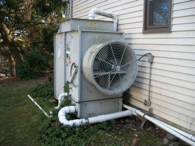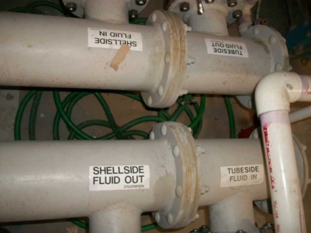 Terence McCann Posted December 3, 2010 Report Posted December 3, 2010 How many square feet is that house? A lot more pictures would help but I'll try to help with what I see. As Bill said BAC stands for Baltimore Aircoil Company http://www.baltimoreaircoil.com/english/ The outside unit is just a cooling tower. If it were an evaporative condenser you would see four pipes going to it. From BAC: Principle of Operation The vapor to be condensed is circulated through a condensing coil, which is continually wetted on the outside by a recirculating water system. Air is pulled over the coil, causing a small portion of the recirculating water to evaporate. The evaporation removes heat from the vapor in the coil, causing it to condense. http://www.baltimoreaircoil.com/english ... condensers A very basic description would be the condenser coil from an air conditioner sitting inside the cooling tower. Water then is pumped over the condenser coil - using water instead of air to condense. The second picture is a heat exchanger. It maybe a shell&tube or a tube&tube but I can't see where all the piping goes to make a determination on type or purpose. Did you see a chiller? You say there is a boiler, were you able to trace this piping? How many AHUs were there? You say there was water piping going to them, were you able to trace it out? It could be a few different systems but I would need more information to make a call. More pictures would help too.