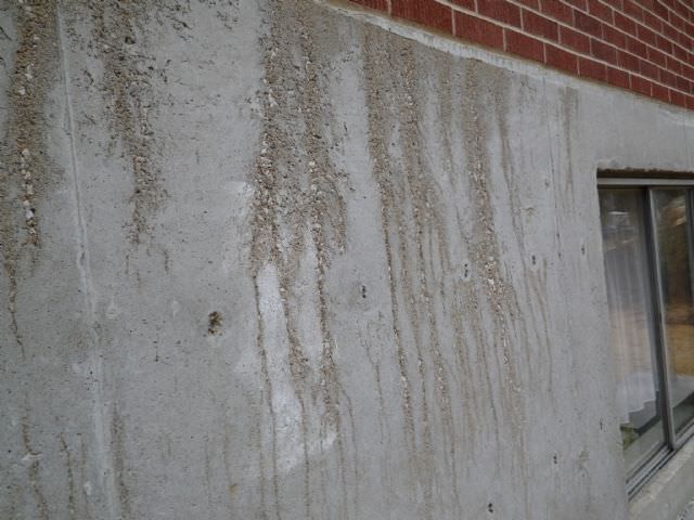 Mark P Posted February 21, 2011 Report Posted February 21, 2011 This house was built in 1958. As you can see from the pictures there is an unusual pattern in the concrete on both the inside and outside of the foundation. This is only at the back left corner, not on either side or the right corner area. On the outside if you rub your finger over these areas the concrete breaks off in sand size particles. On the inside nothing is coming off. I may be wrong but it seems fairly straight forward that moisture is wicking down from the top of the poured foundation causing the concrete to break up. I guess it is similar to spalling in bricks. Has anyone seen this before? Is there a name for it? Is there a fix for it? How big of a concern is it? How would you right it up? You know all the usually questions when you find something for the first time. I remember a thread a few weeks ago started by Kurt that mentioned a product used to seal concrete, but Kurt was asking about its use in a stone foundation. Would that product be a good for sealing this wall, or do we even want to seal the wall. Thanks yaââ¬â¢ll! Click to Enlarge 64.55 KB Click to Enlarge 57.72 KB Click to Enlarge 53.65 KB Click to Enlarge 43.7 KB Click to Enlarge 118.86 KB Click to Enlarge 46.24 KB