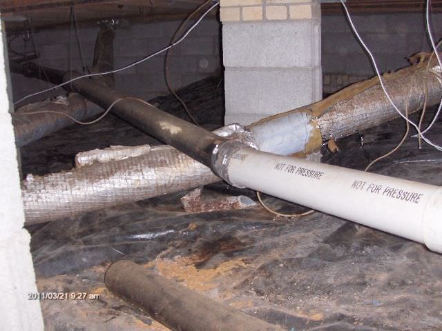 AHI in AR Posted March 22, 2011 Author Report Posted March 22, 2011 I'm wondering if that pipe was pitched properly. That's what happens after years of standing water. Actually, the section pictured was sloped correctly. It was 55 years old -- a little premature for most failures of this type that I see. My inspection this morning of a different home (roughly similar age) did have a replaced section that wasn't well done. One end of the cast iron wasn't re-supported after being replaced by PVC. The "plumber" apparently decided that ductwork was a good support. It may be hard to tell in the photo, but the drain flow was downhill from left to right. Click to Enlarge 62.61 KB