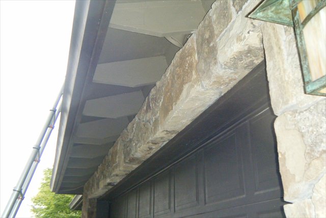Brandon Whitmore Posted September 14, 2011 Author Report Posted September 14, 2011 The house was built in 1999. There is no apparent support above the bay doors or windows. Is there any way they could have pinned them into place? I'm sure all that's holding the stone into place is mortar though. I'd hate to be standing under the stone if/ when it falls. The first picture is showing inset gutters. They must have installed the gutters first and then worked around them when they laid the stone. It'd be a bad deal if an end cap leaked, or gutters overflowed into the wall.