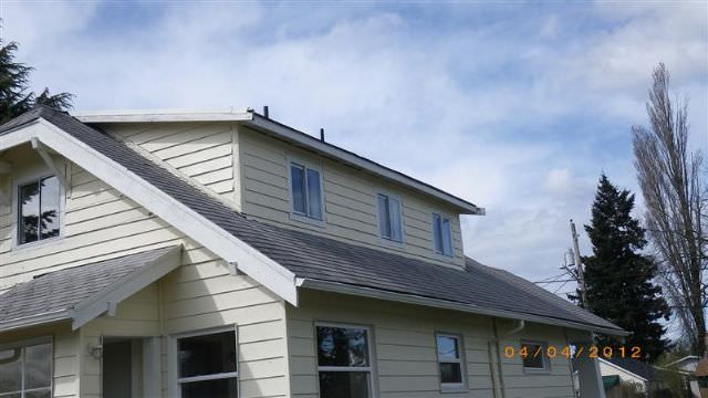 hausdok Posted April 5, 2012 Report Posted April 5, 2012 Why do the rake boards extend past the fascia? Hi, In answer to Robert, yeah, report the missing gutter on the shed dormer. In answer to Joe and Ben, they've been doing that here for a hundred years. We have very deep overhanging eaves here that help to shield the walls from the weather. In fact, the eave of that dormer is short compared to the others on that house, and the rake boards on the lower roof are even a little short because they don't completely conceal the ends of the gutters, which is the way they are usually cut here. The Klondike gold strike occurred in the late 1890's which was smack dab in the middle of the craftsman era, and it was during that time that this region had one of its biggest population/construction explosions. During that era, it was all about exposed woodwork and brackets and rake board design is an important aspect of that design esthetic. It's carried over to this day. Check out the rake boards on this 4-year old townhome which tries to emulate that bracketed style (These eaves are a little shorter than the typical overhang here. Getting up on that roof was....interesting.) Click here Tom, It rains a little bit here and that rain doesn't just last for a little while like the typical eastern gully washer - it continues for days. Algae and moss will typically develop in the shaded area below/besides dormers. The black algae is more aggressive than the green algae but I have no idea why. That combination of algae and water cascading onto the surface can cause the the protective surface granules to slough off and you end up with heavy wear where the water strikes the surface. The typical solution here is a gutter with a downspout that empties onto the lower roof. It works fine except that if a homeowner here isn't careful to kill any algae that developes at the outflow of the downspout he ends up with a concentrated area of wear right there at the outflow. I see it all the time where there is algae growing at outflows while the roof is fine where there is no fungi. Had one recently where the house was oriented so that the front of the house was exposed to the southwest. The downspout of that dormer's gutter, being on the southwest side, was on the weather-exposed side of the house but the roof was in perfect shape there because that's also the sunny side here and the UV exposure had killed the algae. On the opposite (northeast) side, there was algae growing below an identically-configured downspout and on that non-weather/non-sunny side of the house therre was black algae all over the roof and the water from the gutter had caused an ugly christmas-tree-shaped swath of granules to slough off from the downspout outflow all the way to the gutter at the edge of the lower roof plane. So, a gutter narrows the area of damage but it doesn't eliminate it unless they add a butt-ugly downspout lying on the surface of the roof from the corner of the dormer to the gutter; or they are careful to ensure the fungi that develops is killed in a timely manner. Sorry, can't point to any "scientific" proof of this. All I can tell you is that after 16 years of making observations of roofs here, one kind of gets a handle on what works, what doesn't and why. ONE TEAM - ONE FIGHT!!! Mike