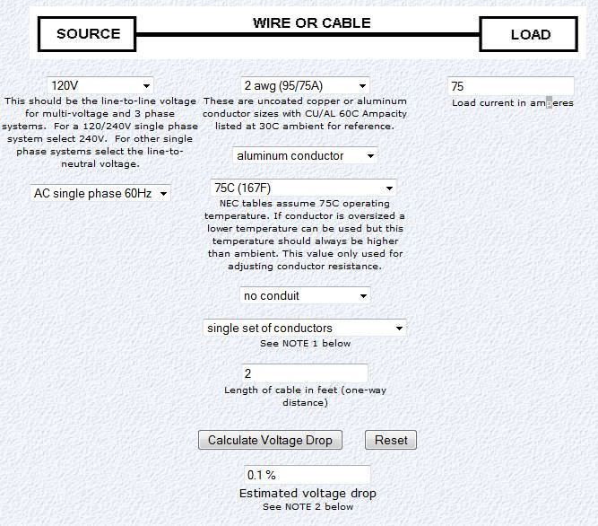 Richard Moore Posted May 30, 2012 Report Posted May 30, 2012 Well, I did say "very close". Marc, I used an online voltage drop calculator (see photo). Given that the voltage drop for a 2 foot 2-AWG Aluminum feeder at 75 amps is only .1% (one tenth of one percent), how much difference do you think a 4"(?) difference will make to the current carrying capacity? I agree there will always be some imbalance. Hell, even if the conductors were the same length, I would expect some other imperfections. However, I suspect in this case it would be a very small amount, and given the topic of the conversation, one that we could largely ignore. Download Attachment: Voltagedrop.jpg 98.98?KB