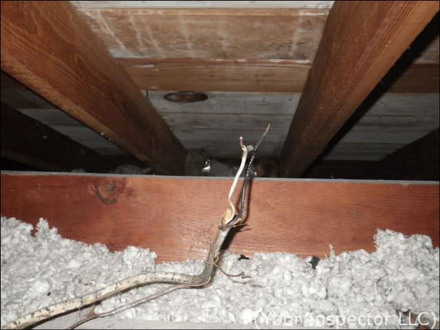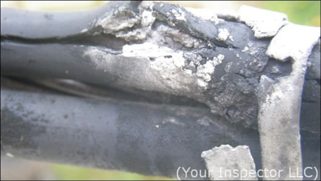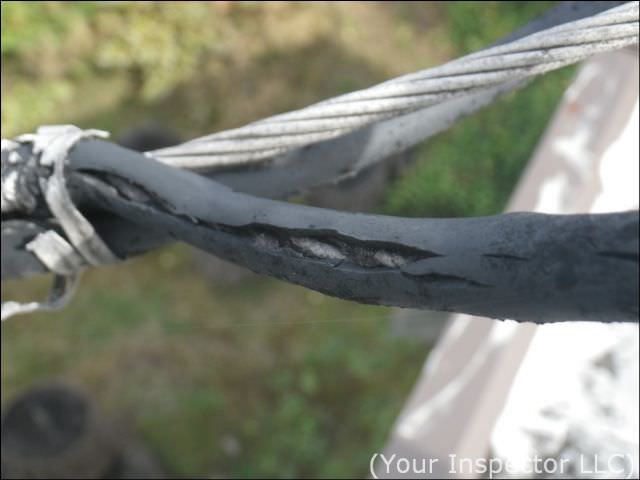 hausdok Posted October 27, 2012 Report Posted October 27, 2012 So, Thursday's inspection was kind of interesting. Found the messenger cable kind of fried. Click to Enlarge 44.19 KB And one of the hot legs from the pole with the insulation split. Click to Enlarge 34.48 KB Ten freet from the house the insulation on that leg was peeled back like an orange peel and that leg is within millimeters of shroting to the messenger. Click to Enlarge 42.71 KB Here's a closup view of the side of that hot leg Click to Enlarge 24.48 KB Another closeup Click to Enlarge 36.53 KB So, I'm in the attic and I find a wire hanging out in the open - some old rag wrap - and I wonder to myself, "Is it hot?" Didn't have my tracer with me so I decided to check it anyway. Held it at arms length and touched the ends together. Whoopey, it's still hot. Thought to myself, "That blew the breaker," so I did it again. Nope, breaker not blown. Click to Enlarge 51.65 KB Figured I knew why. Finished up the attic and then went to check the breaker panel. Yep, not a single tripped breaker. Now you know the rest of the story (At least insofar as why the breaker didn't trip.). Click to Enlarge 27.04 KB Click to Enlarge 38.3 KB Click to Enlarge 32.26 KB ONE TEAM - ONE FIGHT!!! Mike