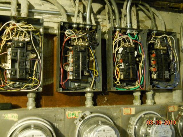 kurt Posted June 1, 2013 Report Posted June 1, 2013 The setup you're seeing is pretty common in 4-12 unit apartment buildings. Regardless of listing, most of these are tapped out, there's usually new appliances and devices not counted in the original configuration, and the room air conditioners usually found in the apartments aren't on dedicated circuits. Not to mention the tangle of AC/BX that's coming out of the top of the panels; can't run that stuff in lengths >6' in the city. It's real easy to can these arrangements on multiple counts. The (too small) panels are only part of the problem. Most often, the building service is only 200 amps.