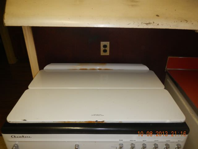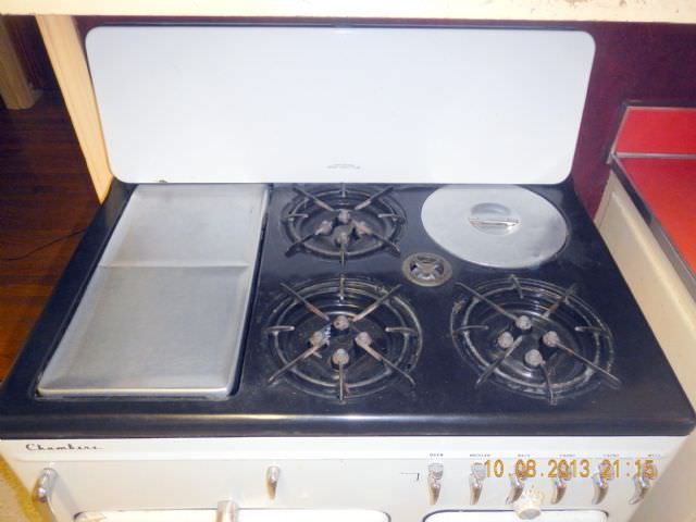 AHI in AR Posted October 9, 2013 Report Posted October 9, 2013 That's the birth date for this beauty I found today. Gotta love this beast. Chambers brand, built like a tank. Neat little griddle feature on the left under the cover that rotated up with a flip of the hand lever on the far left. There was a folding porcelainized top to cover it all up when not being used. Note the safety warning -- apparently a forerunner of all the idiotic warning labels we have today. The owner had thoughtfully saved all of the documentation, including the factory inspection tag indicating the date it left the assembly line. At the right rear corner there was an unusual feature. By today's standards, anyway. The burner control knob referred to it as a "well" and it indeed was a recessed area with three fitted aluminum containers. I'm guessing that you filled the well with water then put your individual vegetables in the containers and into the well where they were heated by the water surrounding them. Anyone know if that's right? Click to Enlarge 31.13 KB Click to Enlarge 40.71 KB Click to Enlarge 49.61 KB Click to Enlarge 26.46 KB Click to Enlarge 18.55 KB