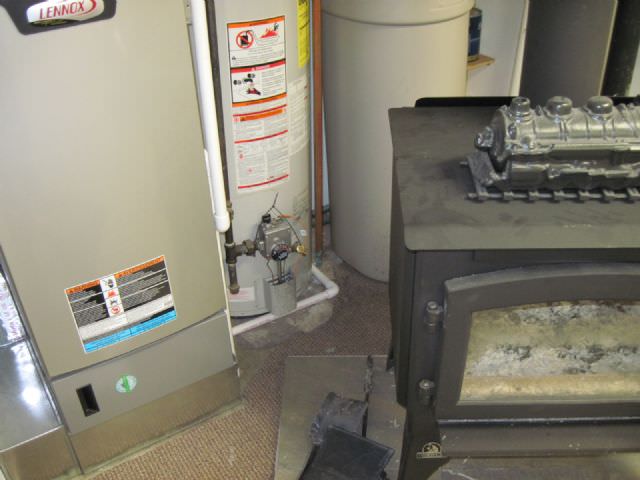 greyboy39 Posted August 5, 2014 Author Report Posted August 5, 2014 The front is fine, nothing even close there. It's about 14 inches from the nearest point of the stove to the furnace. The requirement per manufacturers installation guidelines is 18 inches from the sides to combustibles. The distance from the stove to the water softener is 18 inches. I know it does not look it in the pictures. The wood stove has its' own dedicated flue pipe. not tied into furnace or water heater at all. I need to know if the sheetmetal furnace cabinet is considered a combustible surface, or if there is a gas pipe requirement.