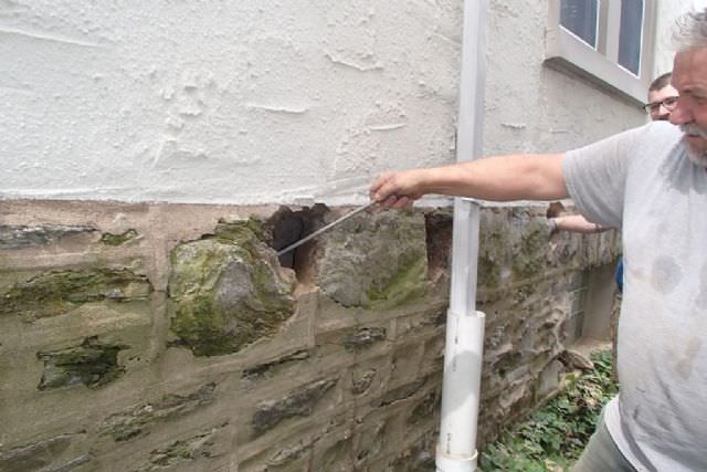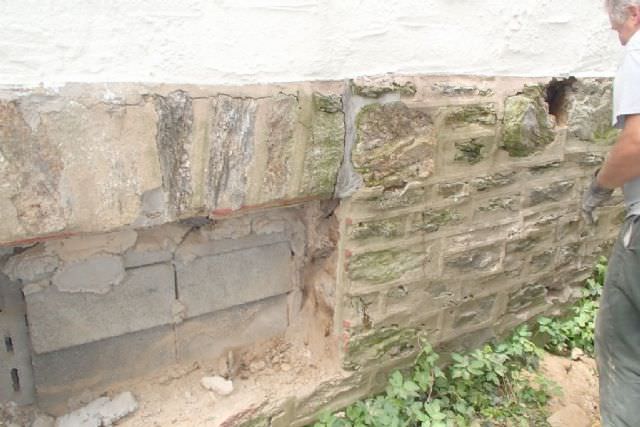 mjr6550 Posted May 10, 2016 Report Posted May 10, 2016 Recently I have come across a few stone foundation walls that are failing because of improper construction and deterioration of mortar. These are often early 20th Century walls constructed with sand/lime mortar. they are typically constructed essentially like a two-wythe wall with some larger stone bonding the inner and outer wythes. Often they do not have many larger stones and as the rubble fill and mortar deteriorated they can separate. When they support brick walls the brick bears on the outer part of the wall and sometimes significant lateral displacement of bowing/bulging occurs. I evaluated one a little while ago and was hired to design a repair. One part of the repair involved dealing with the voids that developed inside of the foundation wall. I found a masonry contractor who was willing to try something new. I had him create some openings at the top of the foundation wall and a few near grade level. We then cleaned out a lot of the loose mortar. At some openings it flowed out like sand (well, it was sand). He then poured a grout mix into the wall cavities/voids. He did a section about 10 feet wide by 4-5 feet high (above grade level). I don't have the number on the amount of material used, but it was probably about 25 to 30 buckets. The next step will involve pointing the stone and then installing tie rods with steel plates at the exterior and connected to floor joists at a spacing of about 4 feet on center. The photos show gaps where a basement window frame was removed, debris removed from inside of the wall, various voids, and grout installation. Click to Enlarge 54.99 KB Click to Enlarge 126.09 KB Click to Enlarge 46.55 KB Click to Enlarge 53.4 KB Click to Enlarge 54.98 KB Click to Enlarge 55.81 KB Click to Enlarge 64.29 KB Click to Enlarge 84.48 KB Click to Enlarge 57.01 KB Click to Enlarge 52.55 KB