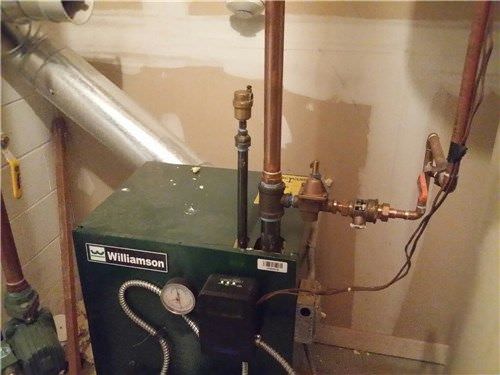 Jon Hodgkins Posted October 19, 2016 Report Posted October 19, 2016 I saw this Williamson oil fired boiler with no readily apparent TPRV. They did not install an extension on the back flow preventer - minor issue, but leaves concern that other parts of installation were performed incorrectly. I reached down to feel if it was maybe built in and concealed by the jacket, but did not feel any other pipes. Is the brass fitting on the top of the black iron pipe an air bleeder valve? Is there any reason why a TPRV would not be required for a boiler. Should I be concerned? Click to Enlarge 38.47 KB Click to Enlarge 33.76 KB