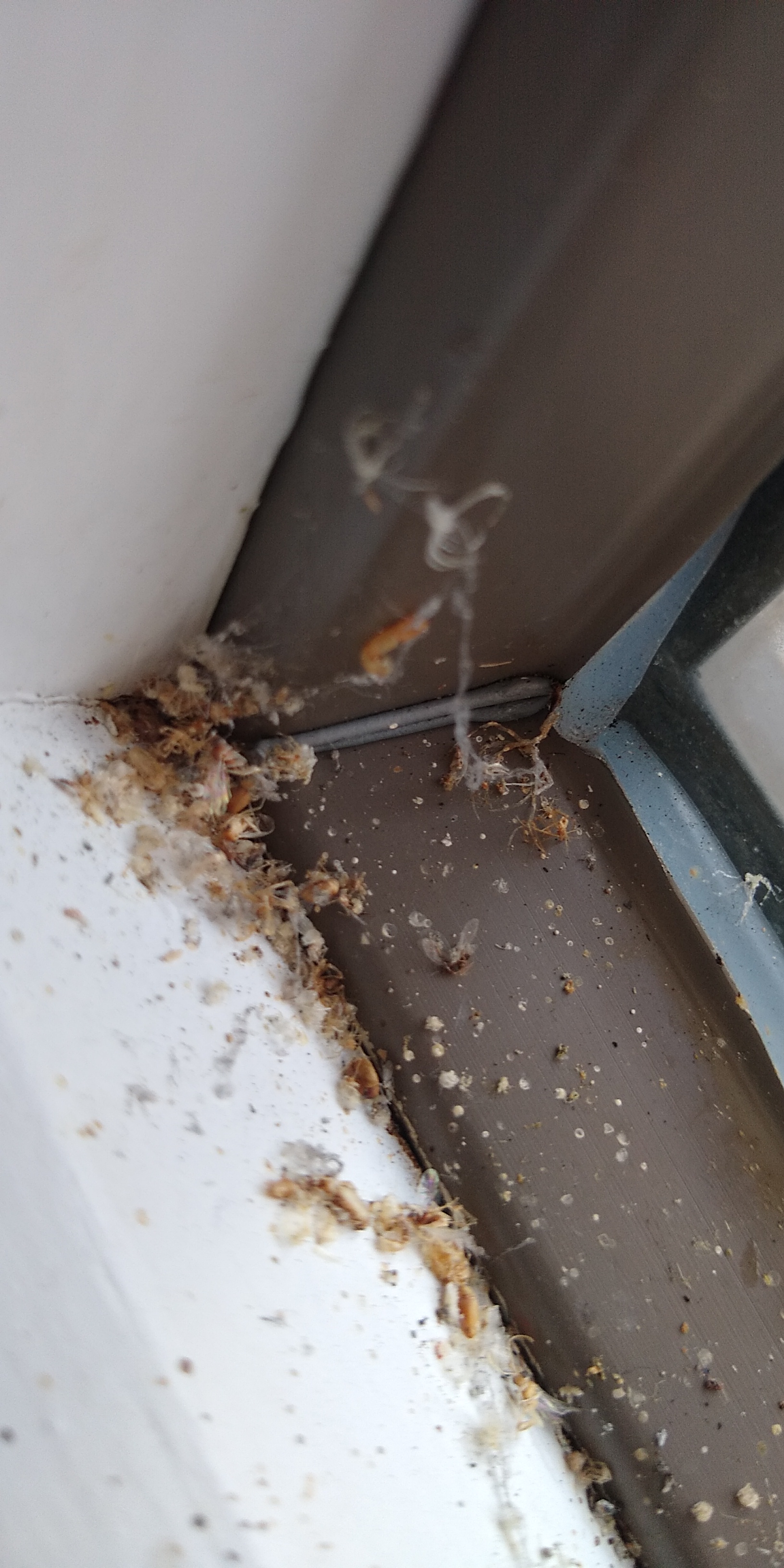 Inco Posted May 12, 2021 Report Posted May 12, 2021 (edited) Can you identify this insect debris in a window? The last photo shows damage to the window frame above. Edited May 12, 2021 by Inco