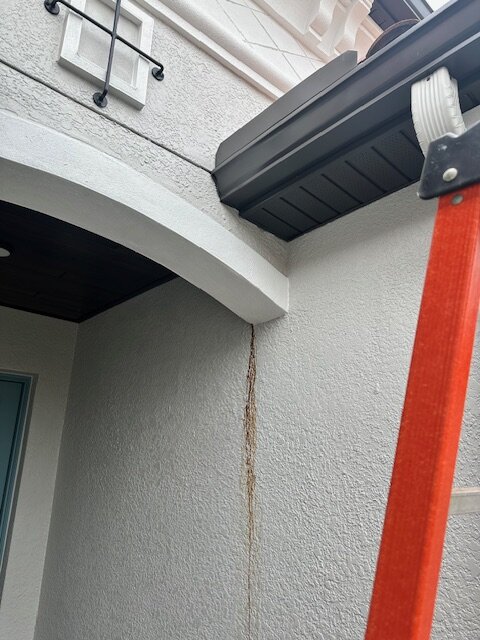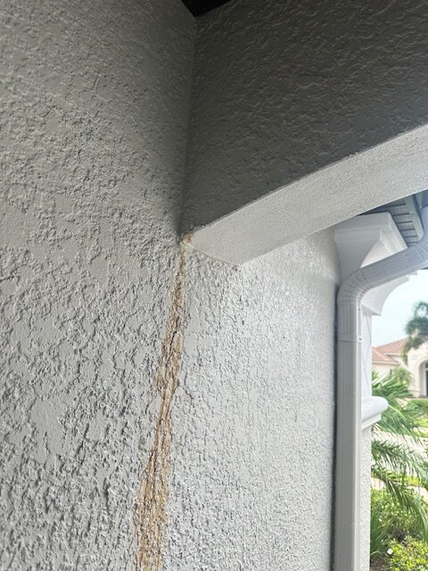 Gregg Posted July 11, 2024 Report Posted July 11, 2024 Hello, I am new to this space. I found it after I found this brown liquid coming out of the stucco on under my covered entry and looking for possible causes. I believe I have seen others on this site call it a cola like color...which is accurate. I tried to clean it today using Dawn soap and water....using a firm scrub brush to no avail. This is stained...and continues to leak. I have a six year old home that I purchased a year ago. The house had its original color and there were no signs of previous staining. I will attempt to attach a photo or two to show you its location. What is located on the interior of this stain is a guest room, and a guest bath about 15-20 feet away. The home is located in Florida and it has been very humid, and rainy the last few weeks. I looked on the tile roof, and gutters, and did not see any obvious signs of a leak, I found some people on this site previously mentioned it could be poor venting into the attic from a bathroom? Sounds feasible. My question to you all is....what do you think should be my next step? Have the roof inspected, have someone check the attic to test for moisture levels?? I would appreciate your suggestions and this occurred within the last two days and looks VERY bad. I am nervous about any damage that may be occurring behind the stucco. Thank you in advance for sharing your knowledge. Gregg