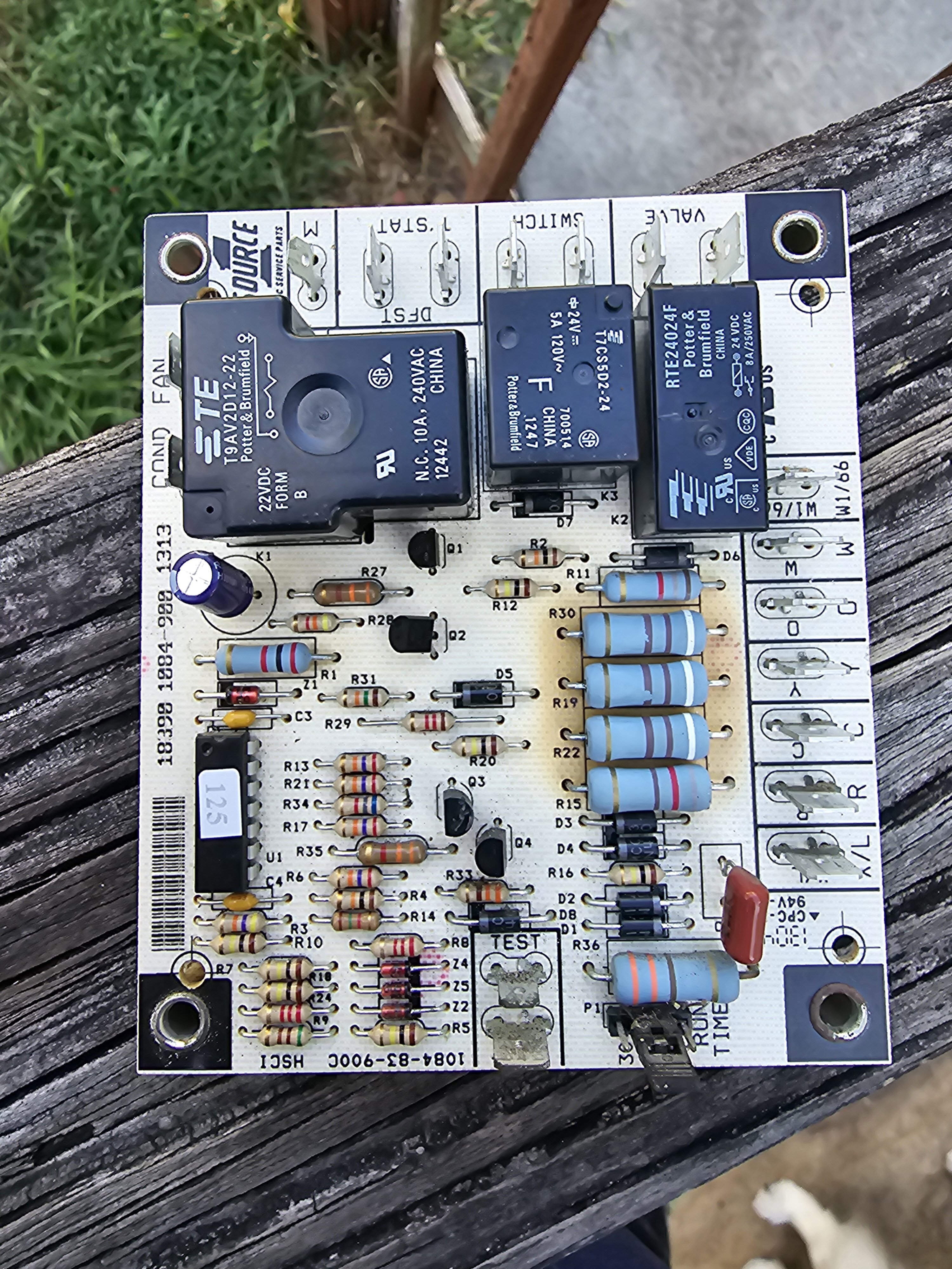 ritter0404 Posted July 24, 2024 Report Posted July 24, 2024 Have a York 3.5 ton heat pump condenser. Last Friday the system went down and I tested and found the board to be the culprit. Replaced the board and not even 24 hours later same issue. 5 resistors under the relays are overheating and I can't figure out why. Unplugged the yellow wire on the y terminal and the bottom blue resistor cooled down. Checked voltage at t-stat wire and is 24 volts. Yellow wire has 24 volts on cool.