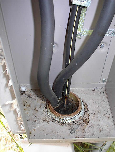 Renron Posted February 13, 2004 Report Posted February 13, 2004 Hey Guys! You all did such a great job on my last question, I'll try another one. A customer of mine has a Service panel where the feed is from the bottom. No problem yet, here is where it gets interesting. The bottom of the Service Panel is severely rusted, but no rust is present above 1" from the bottom of the Panel. I think water is comming in through the underground service (grey)PVC pipe when it rains hard. The house is down hill from the street, so if there is a crack or disconnection somewhere in the pipe from the drop water can travel downhill and then enter the service panel and run out on the side of the house. I personaly have seen this twice before living in Tahoe. My question is: What does code say about a drain or Pee trap type of arrangement prior to the Service Panel? Can a hole be cut in the PVC before the entrance to the panel and then protected by a screen? I know we don't do "code" checks but I would like to know (for myself) how to correct this problem without having to dig up the line all the way to the street ~400' away. Any thoughts? [:-banghead] I am proud to be a (newbie) Home Inspector! Thanks, Ron
