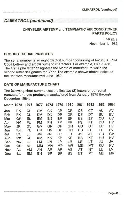 Bill Kibbel Posted February 2, 2007 Report Posted February 2, 2007 I don't think Climatrol uses any type of date code. I wouldn't hesitate to assume it's original. The A/C is a Goodman, so the date of manufacture is July, 1991.
