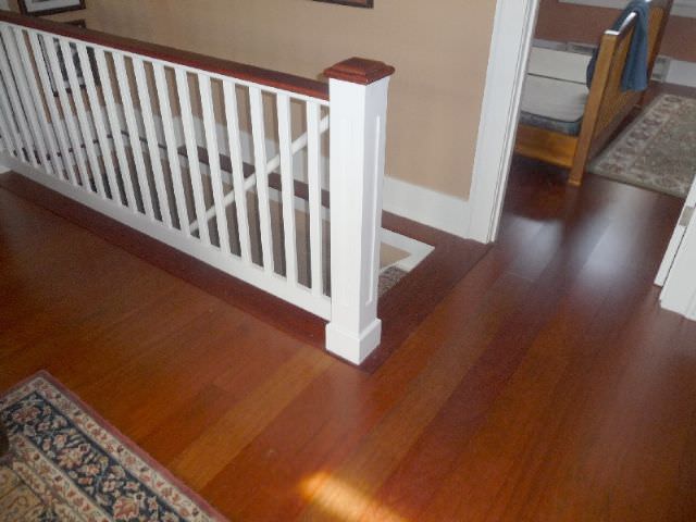 Richard Moore Posted February 24, 2009 Report Posted February 24, 2009 Yeah, I could see myself making a complete mess that way. My other concern was that I would be rushed into a screw-up by the limited tack time. The glue-together method was also time consuming, but I was in no real hurry. It gave me the luxury of carefully selecting each piece for match and/or contrast and taking breaks whenever I felt like it. Actually fun and one of the more "instantly" gratifying things I remember doing. All the transitions were made in my shop out of solid Jatoba (Brazilian cherry). Just took a few photos of the tidier areas... Click to Enlarge 47.49 KB Click to Enlarge 94.58 KB Click to Enlarge 47.91 KB BTW, in case you were wondering: the mattress from the guest bedroom (1st photo) is currently on the floor in the dining room. I've been sleeping down there the last 6 weeks while my dog recovers from leg surgery. He gets a new x-ray tomorrow, and if all is well, we can let him back upstairs and return to a normal life. Yeah...we spoil him...just a little!
