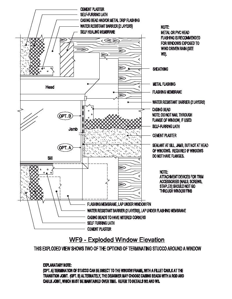 Danny Pritchard Posted June 16, 2004 Report Posted June 16, 2004 Mike said "It's close to right. It needs a head flashing, a slight taper on top of that trimmer and a little bit of clearance (about 3/8 inch) from the bottom of the casing bead to the head flashing." We are thinking on the same page.I mentioned the lack of Z flashing and the clearance.Also mentioned the way stucco is stopped on walls at roofline as a good example of how it should have been done.