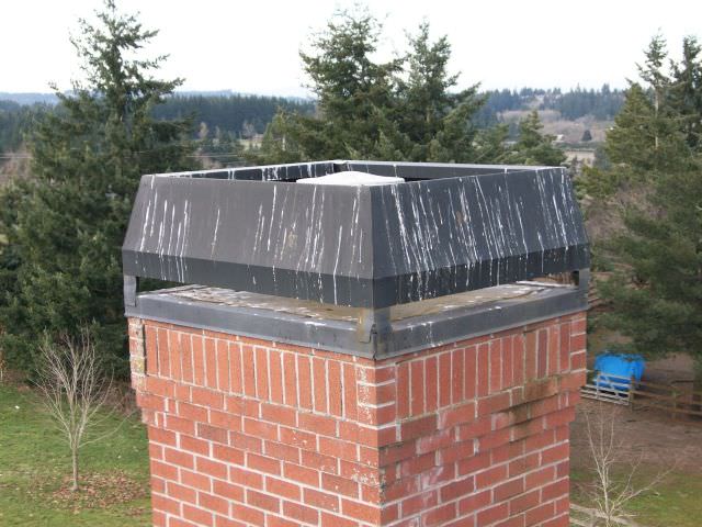 AHI in AR Posted January 22, 2009 Report Posted January 22, 2009 What you probably have is a functional galvanized cap over the chase opening which is sealed to the actual metal chimney section with silicone or similar. It laps --or at least, it should -- over the brick on the edges. There is a decorative black cap over that. We can't see whether the galv cap extends properly over the edges of the chase, (since it's covered by the black cap) but I do see efflorescence extending down the chimney from below the corbelling. I still suspect some leakage there. PS: Ya'll got a lot of birds there? That's a bunch o' droppings on that cap!