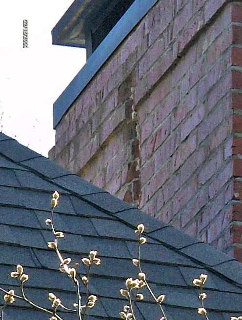 AHI in AR Posted February 18, 2009 Report Posted February 18, 2009 I've never seen anything like this. Here's a couple pics from a home built in 1994 with a site-built masonry fireplace. It was a two story with a 10 in 12 pitch so I didn't get up on it. The back side of the fireplace had a roughly "v" shaped, vertical cleft in it straight down the center from the band to the top of the cricket. The room it was in was a two story family room so there was no attic access. Since I couldn't get close on the roof, I couldn't get a good, up-close look. I am at a loss as to what happened. These are modern, hard-fired bricks so I can't see it being freeze damage. The pattern doesn't fit that scenario anyway. I can come up with two possibilities: 1. There was a chimney fire and the brick was forced outward from the inside, possibly due to inadequate masonry mass between the tiles and the exterior brick. It seems to me that pressure from the inside might explain the "V" shape damage to the brick. 2. A lightning strike. However, I saw no evidence of this otherwise. Anyone ever see anything like this or have a better guess? And now for something completely different...can someone with magical powers please change the incorrect spelling of received which you see after uploading a photo:The following file has been successfully recieved Click to Enlarge 73.01 KB Click to Enlarge 162.26 KB