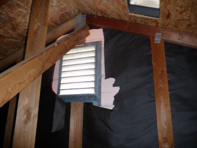 Richard Moore Posted February 22, 2009 Report Posted February 22, 2009 Same 1992 townhouse with the drainage issues (I'll update that mess later). I enter the attic and am immediately greeted with the pleasant translucent glow of sunshine through vinyl siding at the gable end walls. As if having no backerboard or sheathing and various tears and holes in the felt wasn't bad enough, the idiots decided to just cut the middle stud (web?) to install the gable vent. I could grab that 2 by 4 below the vent and move the whole thing in and out 6" or more. Click to Enlarge 41.05 KB This place was just CRAP, with everything done on the cheap and wrong. BTW...for those that might want it, the Vinyl Siding Institute installation manual is at... http://www.vinylsiding.org/publications ... Manual.pdf Page 11... Sheathing/Backerboard Vinyl siding should be applied over a sheathing that provides a smooth, flat surface. Consult local building codes for sheathing requirements. Vinyl siding should never be applied directly to studs without sheathing. As an alternative, installation of specific types of contoured foam underlayments for various styles of vinyl siding are available. Some manufacturers of vinyl siding do not recommend the use of drop-in backers with certain vinyl siding configurations. (my bold) You'd think that was clear enough even if you lacked common sense!