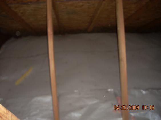 sepefrio Posted April 22, 2009 Report Posted April 22, 2009 Besides getting insulation facts wrong. First I can't remember ever seeing this foil without insulation attached. What is spread on top of the insulation looks like the exact same foil wrapped around ducts but does NOT have the attached insulation. It is a double ply foil, with woven threads, um, blanket. Maybe they were thinking of rolled insulation and this would have the same effect? The attic, which had several roof leaks and the HVAC sweating was very damp, musty and just smelled bad. Click to Enlarge 18.83 KB Click to Enlarge 16.21 KB Click to Enlarge 46.16 KB