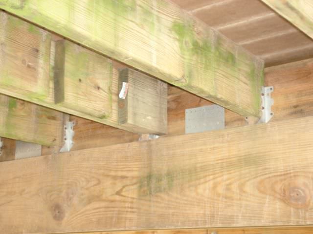 asihi Posted September 14, 2009 Report Posted September 14, 2009 Here's a picture of a deck I did last week. Besides many other problems, the joist hangers are a classic. This is a townhouse development where they are all the same! That's a deck built by pros. Nice. Here's a photo of a deck built by a resident in my jurisdiction. He'd never built anything before. I answered a few of his questions then handed him a prescriptive deck building document I copied from somewhere and a Simpson Deck Accessory Catalog. He's pretty proud and I told him I'd share the photos with you folks. Darren's photo is why I don't use the terms professional or amateurish in my reports any longer. I still use "crappy" or "built by a fourth grader". Click to Enlarge 51.71 KB Chad please elaborate on this deck. From the limited view that we see in the picture, what about it didn't you like? Maybe some sway bracing? How tall was the deck off of the ground? The only thing that looks a little strange is how he attached the beams to the posts with those connectors, but it looks like he used these http://www.strongtie.com/products/connectors/DJTZ.asp Though it would be nice to see some through bolts. Just curious. Tony