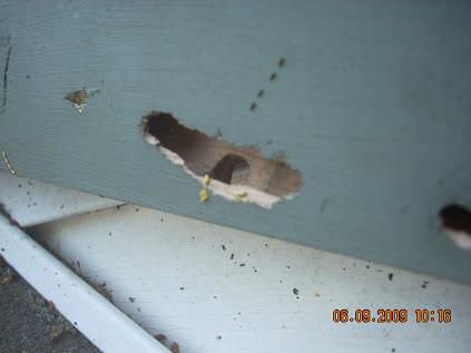 Kyle Kubs Posted June 12, 2009 Report Posted June 12, 2009 The first picture looks like what I've always called Japaneese Beetles, wouldn't have given them a second glance on an inspection. The second & third photo's are definitely Carpenter Bee Damage. They're very prevalent here. You often see them hovering around the holes this time of year if they are active. Download Attachment: DSCN1553.JPG 967.41 KB