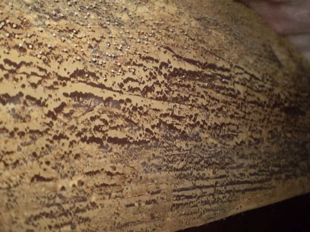 Richard Moore Posted July 11, 2009 Report Posted July 11, 2009 The first picture is more interesting. The outer surface seems to be a perfectly flat plane interrupted by honeycombing. It looks as if there were a piece of sheet metal or something similar against the wood and some insects were excavating in there. That one was really throwing me. It looks almost like a cleanly sliced WDO "example" with frass packed galleries, etc, etc. you might find in a classroom...or a glass fronted ant (termite?) farm. The "sheet metal or something" is a good, possible explanation. You would have to expect the damage goes a lot deeper and that the small shrooms are almost a byproduct of the insect damage.