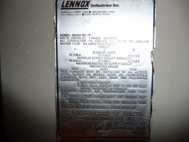 Bill Kibbel Posted November 3, 2009 Report Posted November 3, 2009 The model number has no date info. It has coding for the place of manufacture and also indicates that it's a horizontal electric furnace, 208/230v single phase and 60 hertz. There is a separate small rectangle-shaped tag with rounded corners that is clearly labeled "SERIAL NUMBER". It starts with 4 numbers and 1 letter, space, then 5 numbers. 5178M 99989 would be manufactured in 1978. Efficiency wise, I doubt that a new one is noticably better than a 50 year old model.Improvements in sequencing. If I was buying a house with an electric furnace (no matter the age) and it has AC, I'd be puttin' in a heat pump moments after closing.