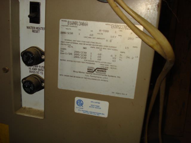 Bain Posted December 18, 2009 Report Posted December 18, 2009 I found this condenser sitting in the corner of a garage in a 40 year old house this morning. It took a minute or so, but I quickly realized that the refrigerant lines and power cables had been severed and pushed back into the wall (I pulled them out, which is why you can see them in the photo). Anyhow, it was intended to warm up the water heater. But should this thing have been installed in a garage? The 06 in the model number suggests it's a 1/2-ton unit, and the 70 in the serial number likely indicates the year. I Googled "water heater heat pump" and apparently these guys are fairly common, even though I've never seen one in my area before. Does anyone know if these heat pumps are efficient or whether they work well? Click to Enlarge 37.63 KB Click to Enlarge 31.47 KB