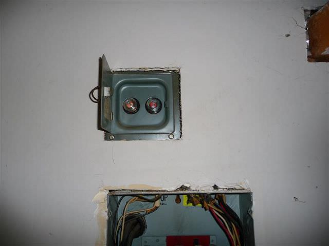 Jim Katen Posted April 24, 2010 Report Posted April 24, 2010 Home built in 1959. The main panel are breakers, but then there are these 2 fuses in a separate panel above. Not labeled of course. Would the fuses be the main shut off or running something else? The largest Edison base fuse is only 30-amps, so they're not the main. This configuration was common as a feeder to water heaters. If someone wants to know what the fuses control, that person can unscrew the fuses and then see what stops working. - Jim in Oregon